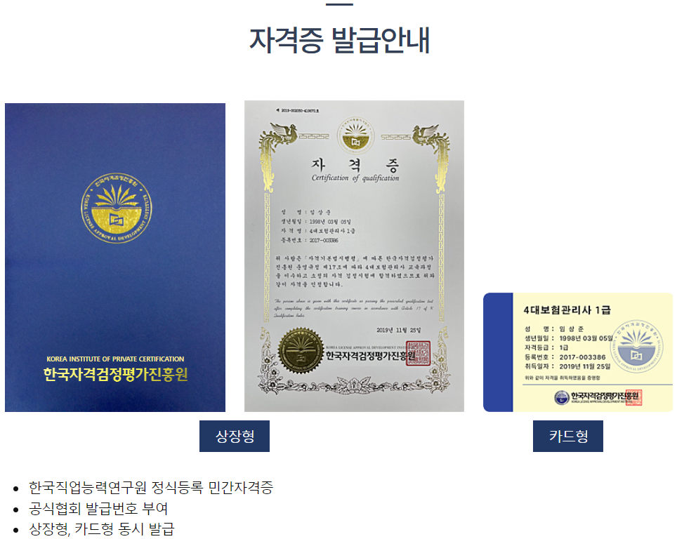 - 자격증 발급대상: 시험 합격자 중 발급 희망자
